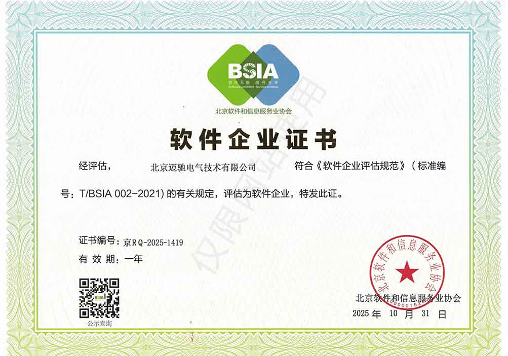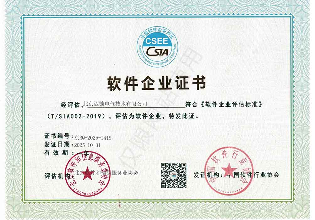 经过多年的蓬勃发展,公司现已取得了电力产品相关专利和软件产品著作权60余项,并通过了专精特新企业认证、高新技术企业、中关村高新技术企业、软件企业的认定和ISO9001质量管理体系。我们一直秉诚“质量第一、诚信为本、顾客满意、持续改进”的发展理念,通过自身的不断开拓发展,以期为客户提供更优质的服务。